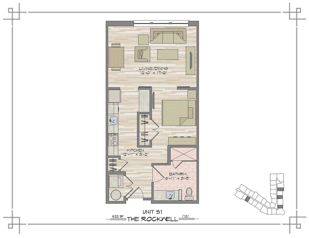 Studio, 1 Bath, 628 sq ftAvailable NowModel Gallery