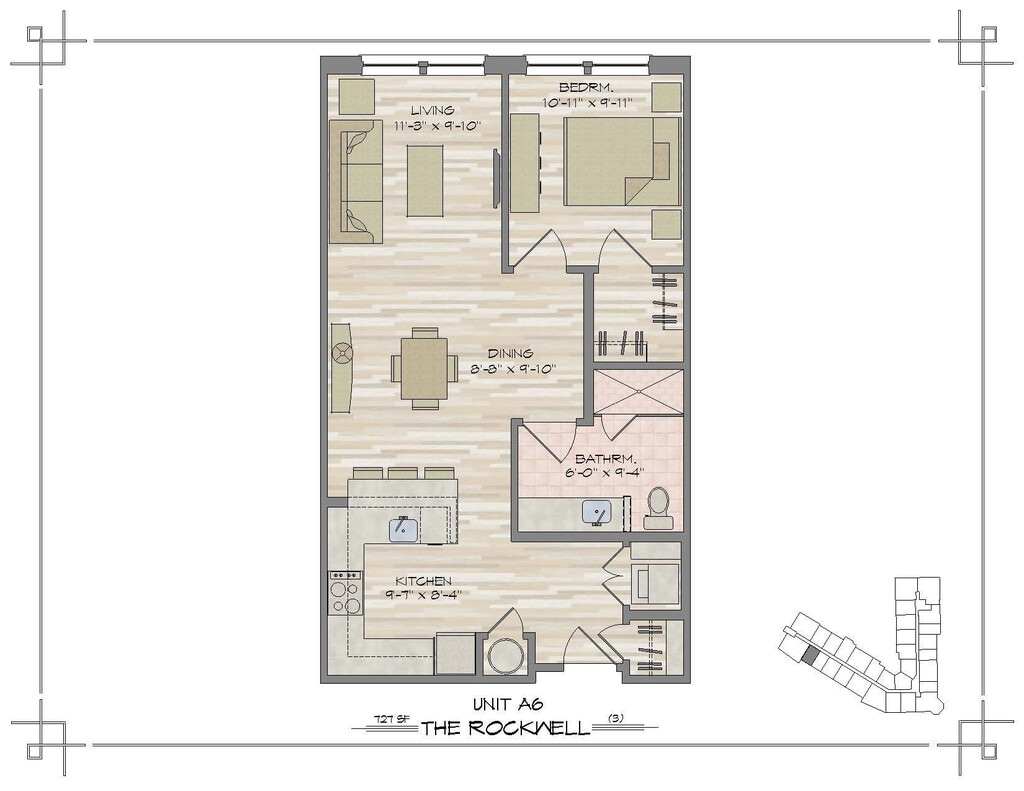 1 Bed, 1 Bath, 727 sq ftModel Gallery