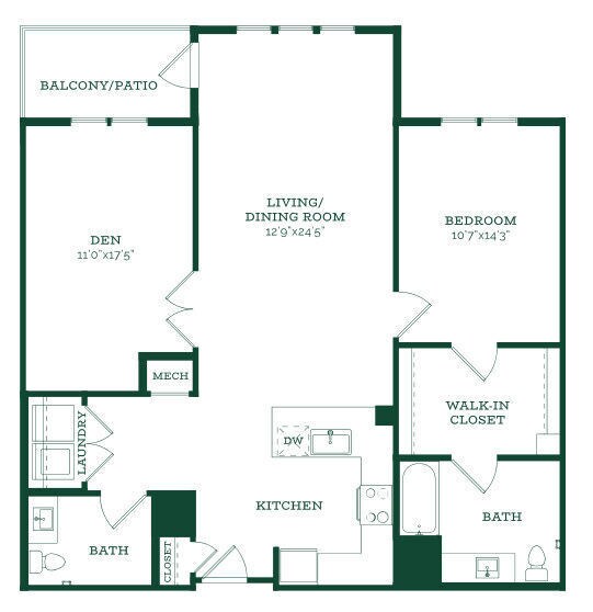 1 Bed, 1.5 Baths, 1201 sq ftTotal Monthly PriceAvailable Nov 14Largest 1 BedroomThis is the largest 1 Bedroom at this PropertyModel Gallery