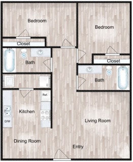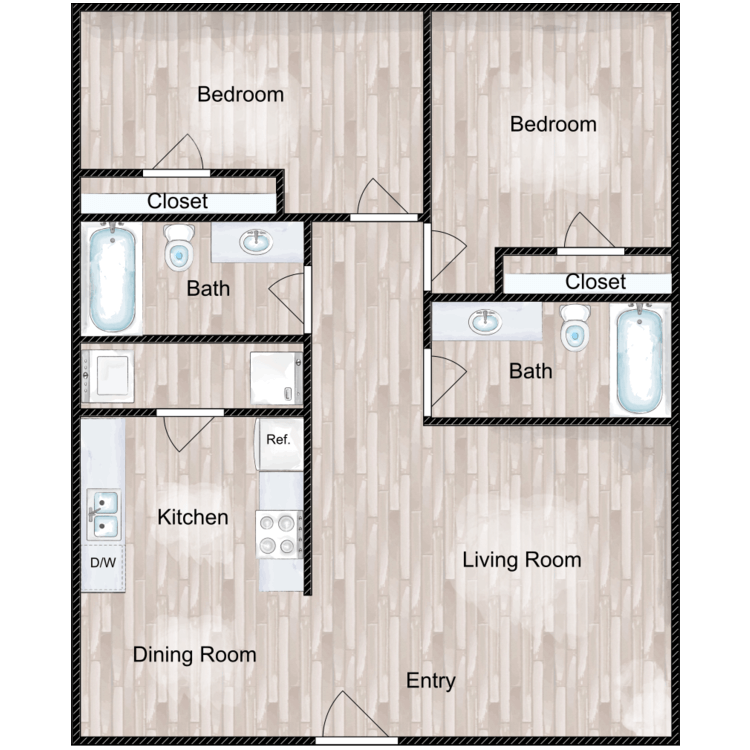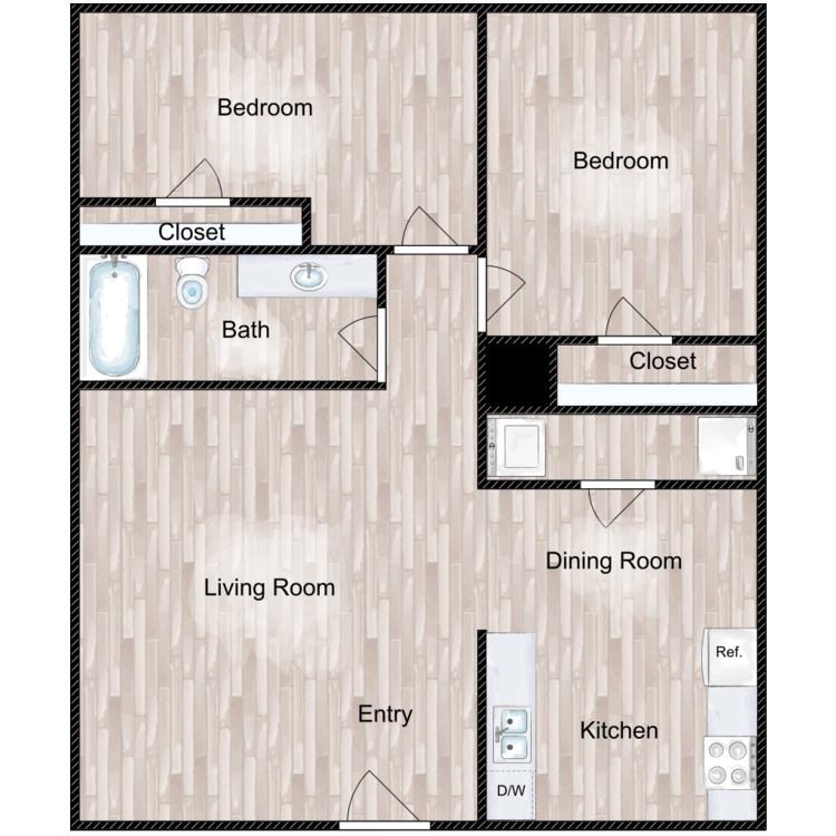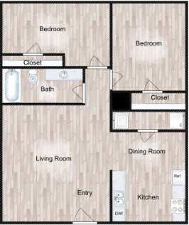 2 Beds, 1 Bath, 770-842 sq ftAvailable NowModel Gallery