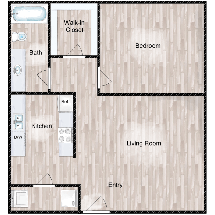 The Teddy - Floorplan 1 Apartment Unit: 030EApartment Model: The TeddyFrom $1,2661 Bedroom, 1 Bath, 662-712 sq ftAvailable January 5, 2026The Eleanor