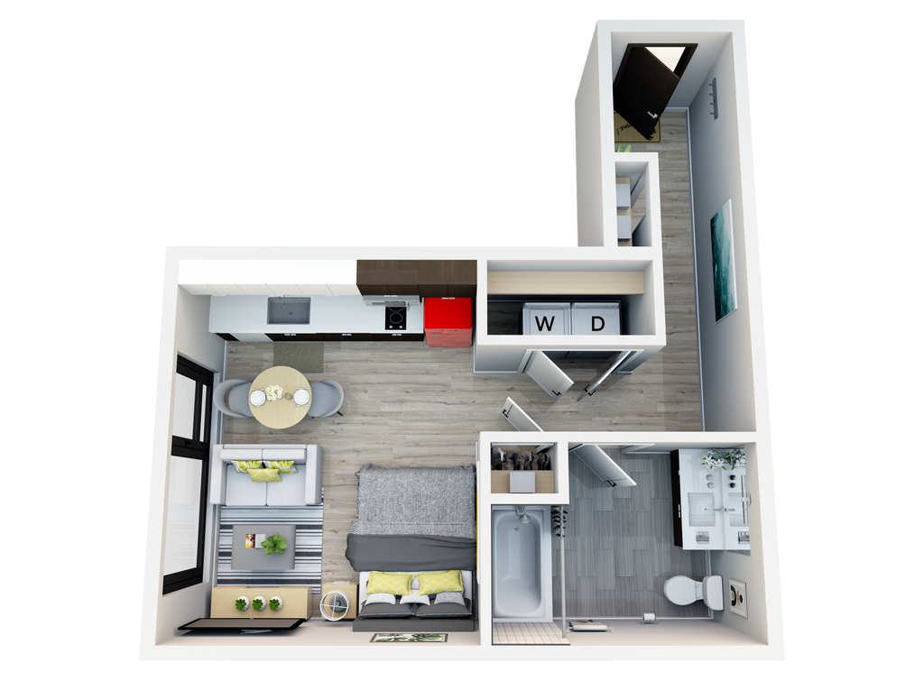 Studio, 1 Bath, 458-613 sq ftAvailable NowLargest StudioThis is the largest Studio at this PropertyModel Gallery