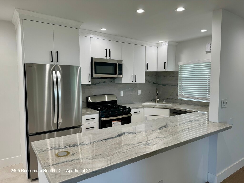 The Roscomare is a boutique apartment community located in the Bel Air neighborhood of Los Angeles, California. Our philosophy is if you want to live a life you love, you need to love where you live, so we have created modern, clean, stylish and upscale apartment homes that make our residents feel safe, comfortable and appreciated. The Roscomare's apartments have been thoughtfully designed and remodeled to include many high-end features like stone counters, hardwood floors, designer tile, LED lighting, stainless steel appliances, custom cabinets, AC and large walk-in showers. In addition to all the features our apartments offer, The Roscomare also provides a large pool area with canyon views, gated entry, on-site management, on-site covered and assigned parking, on-site laundry facilities and a large furnished BBQ area for our residents to enjoy. Loving where you live doesn't just mean you have a great apartment, it's also about where that apartment is located. The Roscomare is just over 3 miles from the UCLA campus and all that Westwood has to offer. Our location allows our residents easy access and multiple routes to almost anywhere in Los Angeles since we are under 2 miles from the 405 and Sepulveda Blvd., 3 miles from Beverly Glen Blvd, and a mile from Mulholland Drive. We are also located next door to one of the best public elementary schools in the city of LA, so our residents don't even have to get in the car for their children to get a fabulous education! Regularly referred to as one of LA's safest and most prestigious neighborhoods, Bel Air offers the schools, safety and laid back feel of a suburb, all while being in the heart of Los Angeles and just minutes from Beverly Hills, the San Fernando Valley and Century City. We have extensively remodeled the building to beautify and modernize it, and give both our old and new residents a wonderful place to call home.