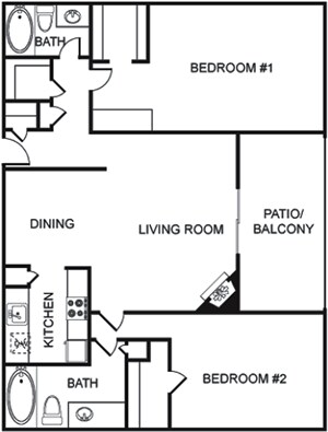 Apartment Model: B4$1,1992 Bedroom, 1.5 Bath, 1361 sq ftAvailable Now![]()
