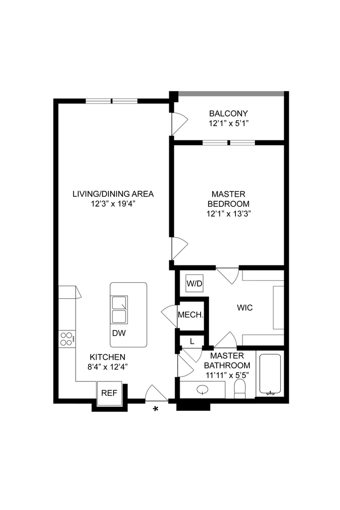 A3 - Floorplan 2 Apartment Unit: 1325Apartment Model: A3From $1,8741 Bedroom, 1 Bath, 820 sq ftAvailable November 8, 2025$1,582