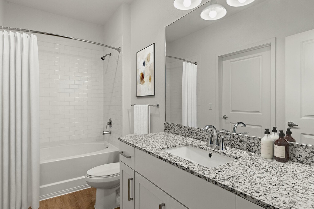 - Luxe Baths with Granite Vanity Tops and Tiled Baths/Showers
