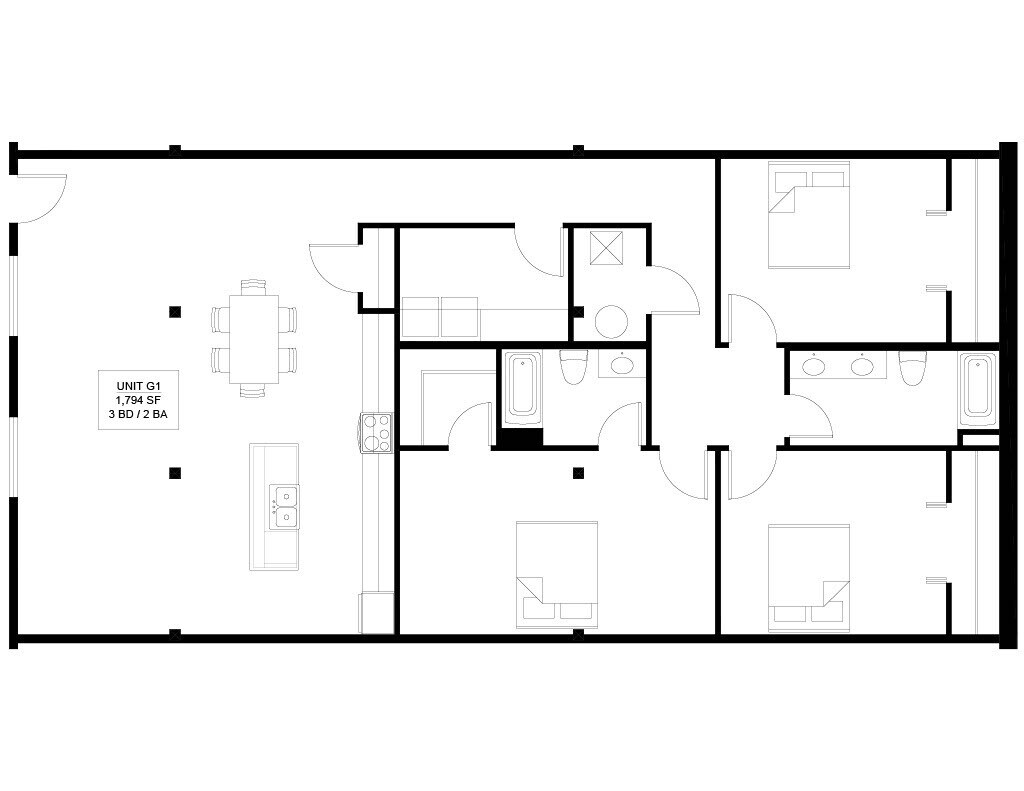 Apartment Model: The Bodega$1,6901 Bedroom, 1 Bath, 1832 sq ftAvailable Now![]()