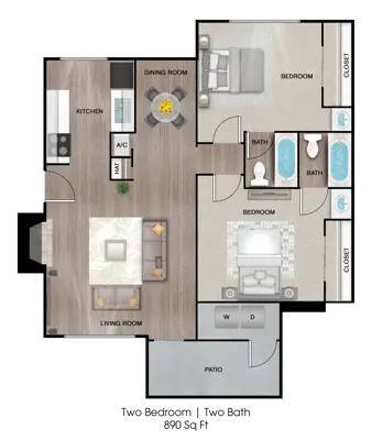 2 Beds, 2 Baths, 890 sq ftAvailable NowModel Gallery