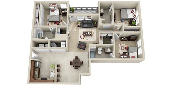 2 Beds, 2 Baths, 1082 sq ftModel Gallery