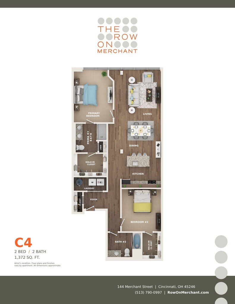 The Row on Merchant offers 1 to 3 Bedroom apartments starting from $1,443 and having 780–1,600 sq ft. Here is the current pricing and availability: