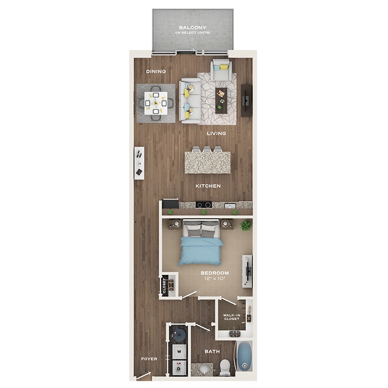 Apartment Model: 1 Bed, 1 Bath - A1From $1,4401 Bedroom, 1 Bath, 906 sq ftAvailable Now![]()