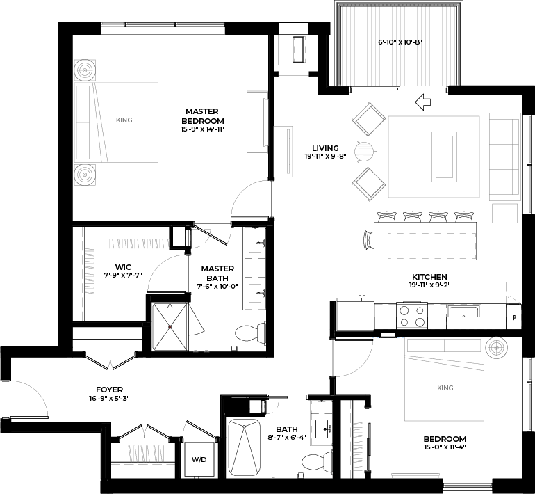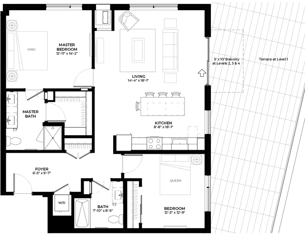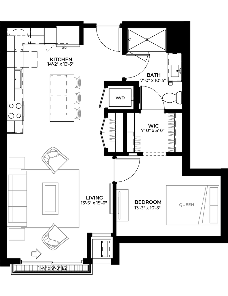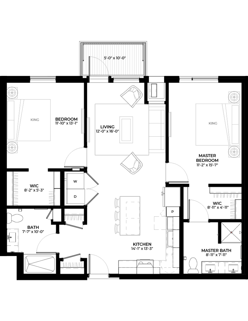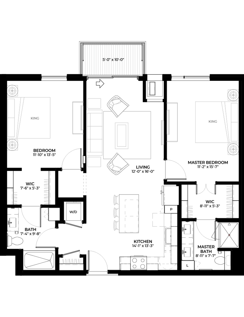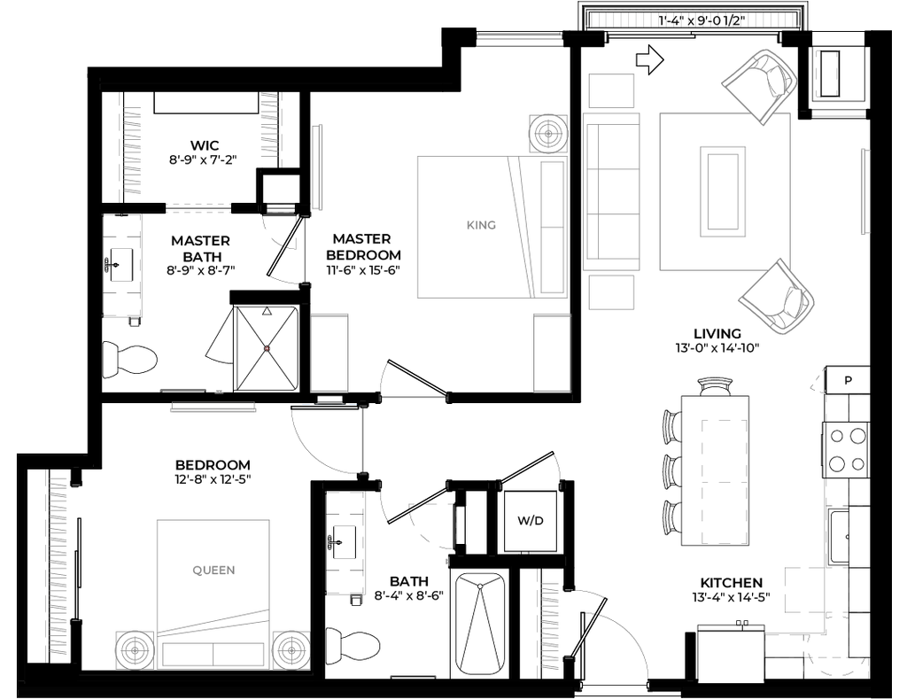 1 Bed, 1 Bath, 767 sq ftPlus FeesAvailable NowModel Gallery