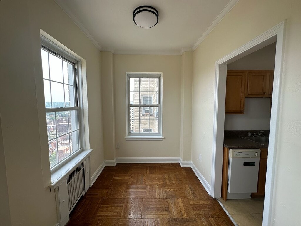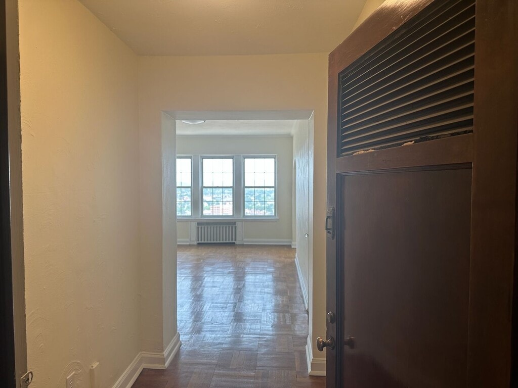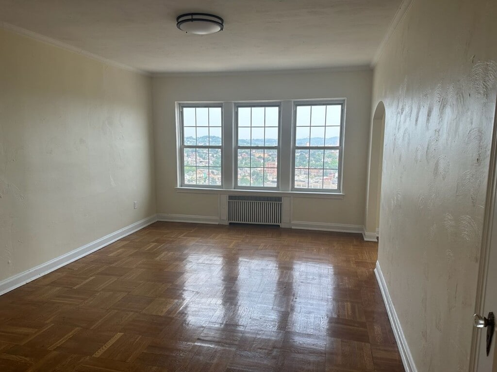 Step inside a beautiful Art Deco landmark when you enter the Royal York building. This 11-story high-rise is located in heart of Schenley Farms, a beautiful residential neighborhood in Oakland. From the spectacular views to attentive staff you can count on, you’ll truly feel at home at Royal York Apartments. This Studio apartment has everything you need in a place to call home. The apartment also features hardwood floors and high ceilings. All units have a flat utility rate of $215.00/month for the first tenant plus an additional $115.00/month for each tenant in addition to the unit. Other amenities include on-site parking for an additional fee, laundry room, rooftop patio, fitness room, service elevator, and the following utilities are included in the flat utility fee listed above: water electric gas refuse removal/trash - Security deposit is equivalent to one month's total rent plus $25.00 for each building key FOB per tenant. - Tenant is financially responsible for providing air conditioner and wifi/cable. All Sterling Land buildings are setup for Comcast Xfinity.