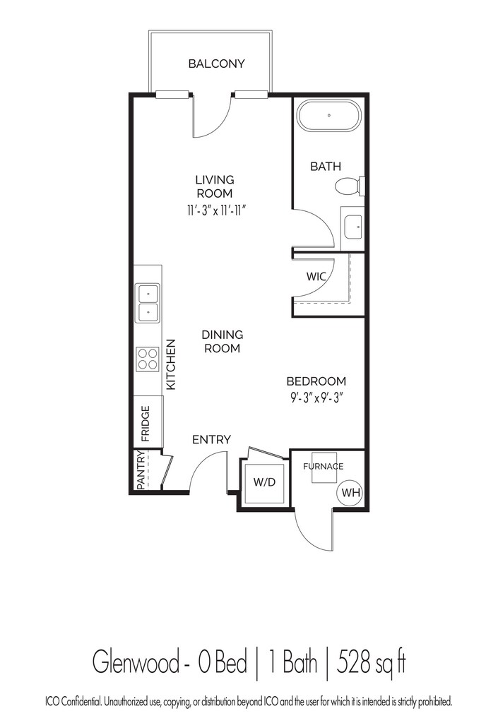 Glenwood Studio - Floorplan 2 Apartment Unit: A405Apartment Model: Glenwood Studio$1,289Studio, 1 Bath, 528 sq ftAvailable December 6, 20251 Bedroom