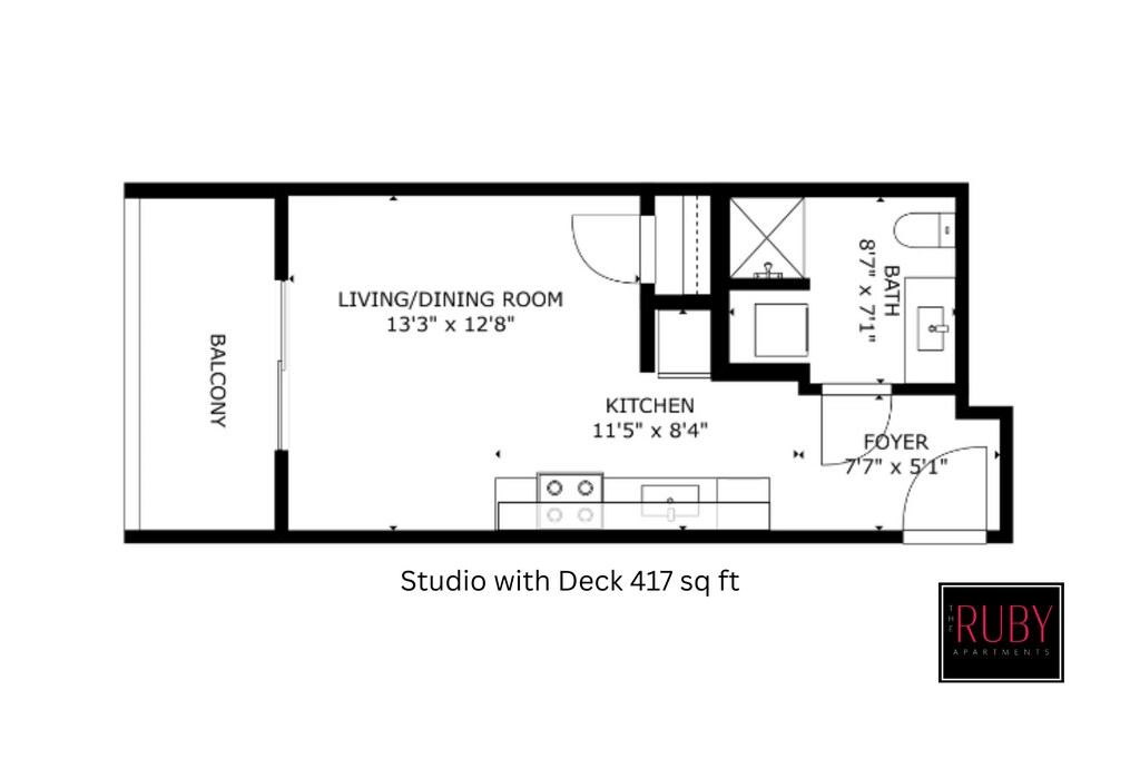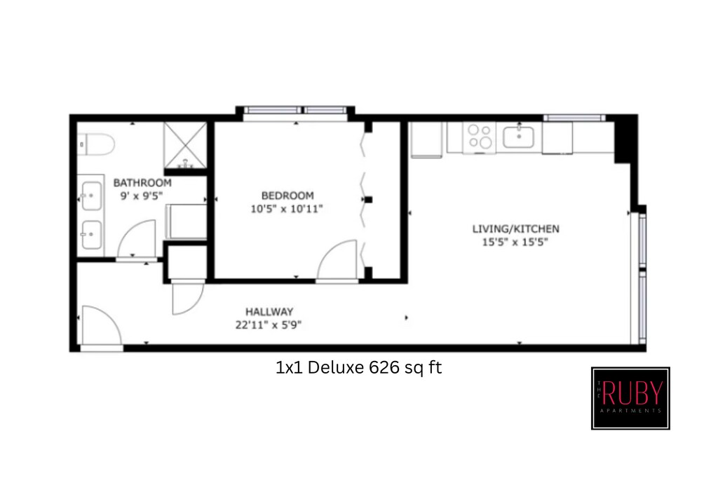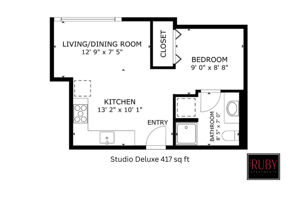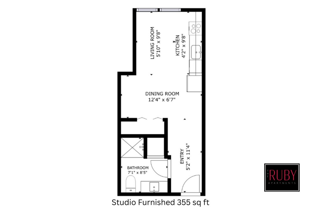 Studio Deluxe - Floorplan 7 Apartment Unit: 616Apartment Model: Studio DeluxeCall For RatesStudio, 1 Bath, 417 sq ftAvailable NowStudio - Furnished