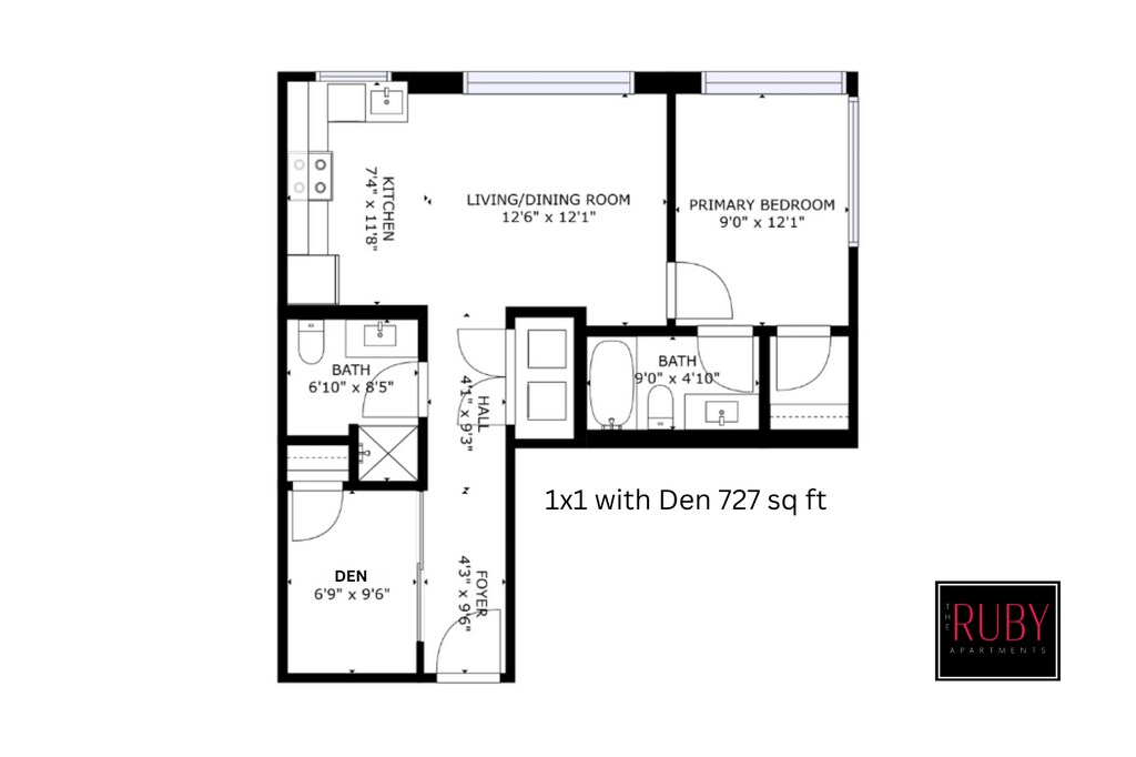 The Ruby offers Studio to 2 Bedroom apartments having 355–904 sqft. Here is the current pricing and availability: