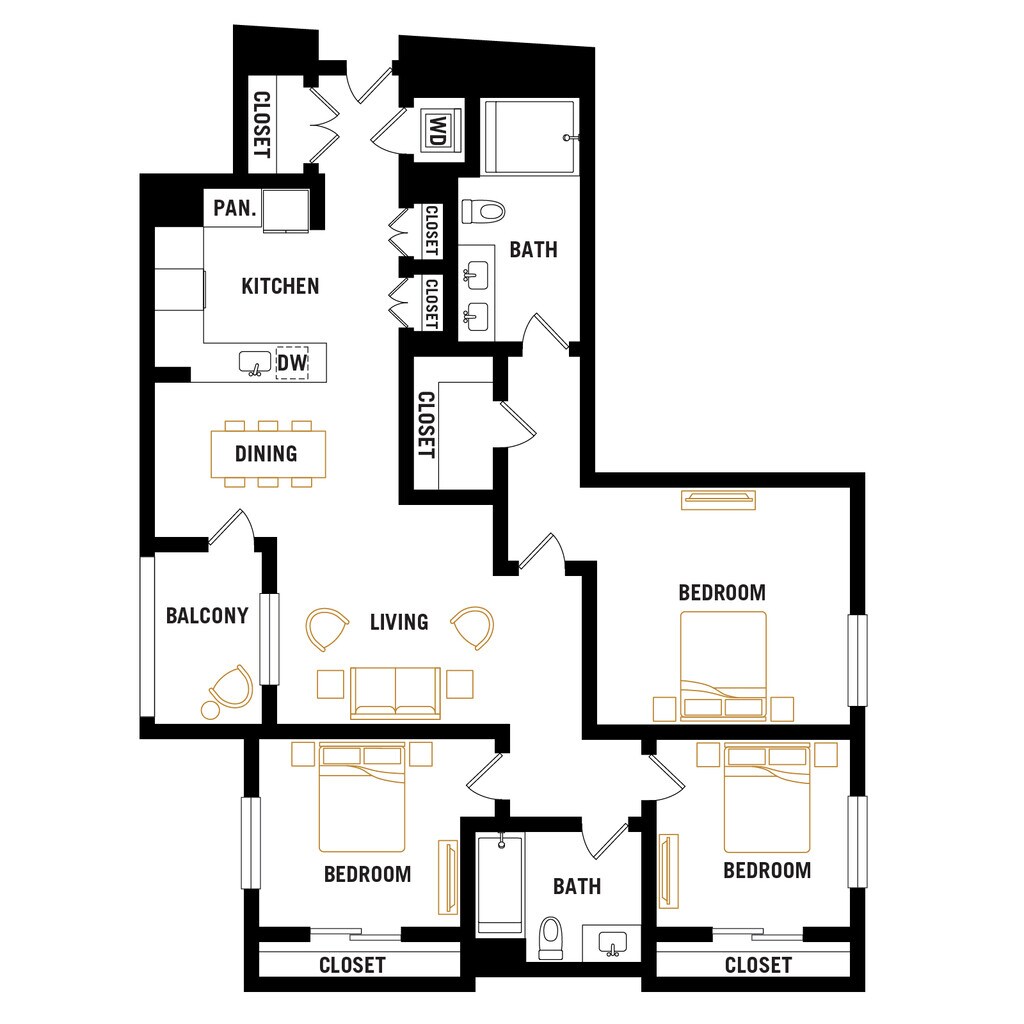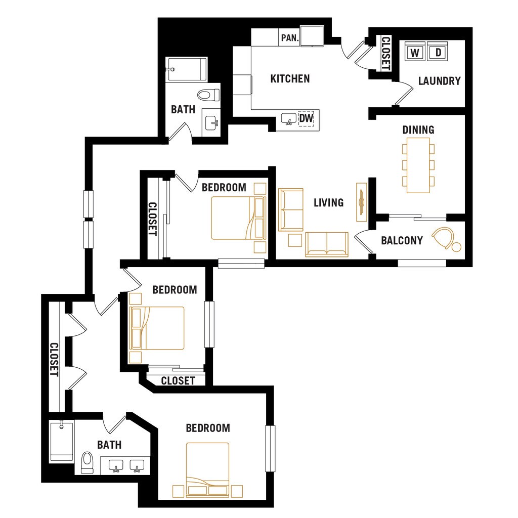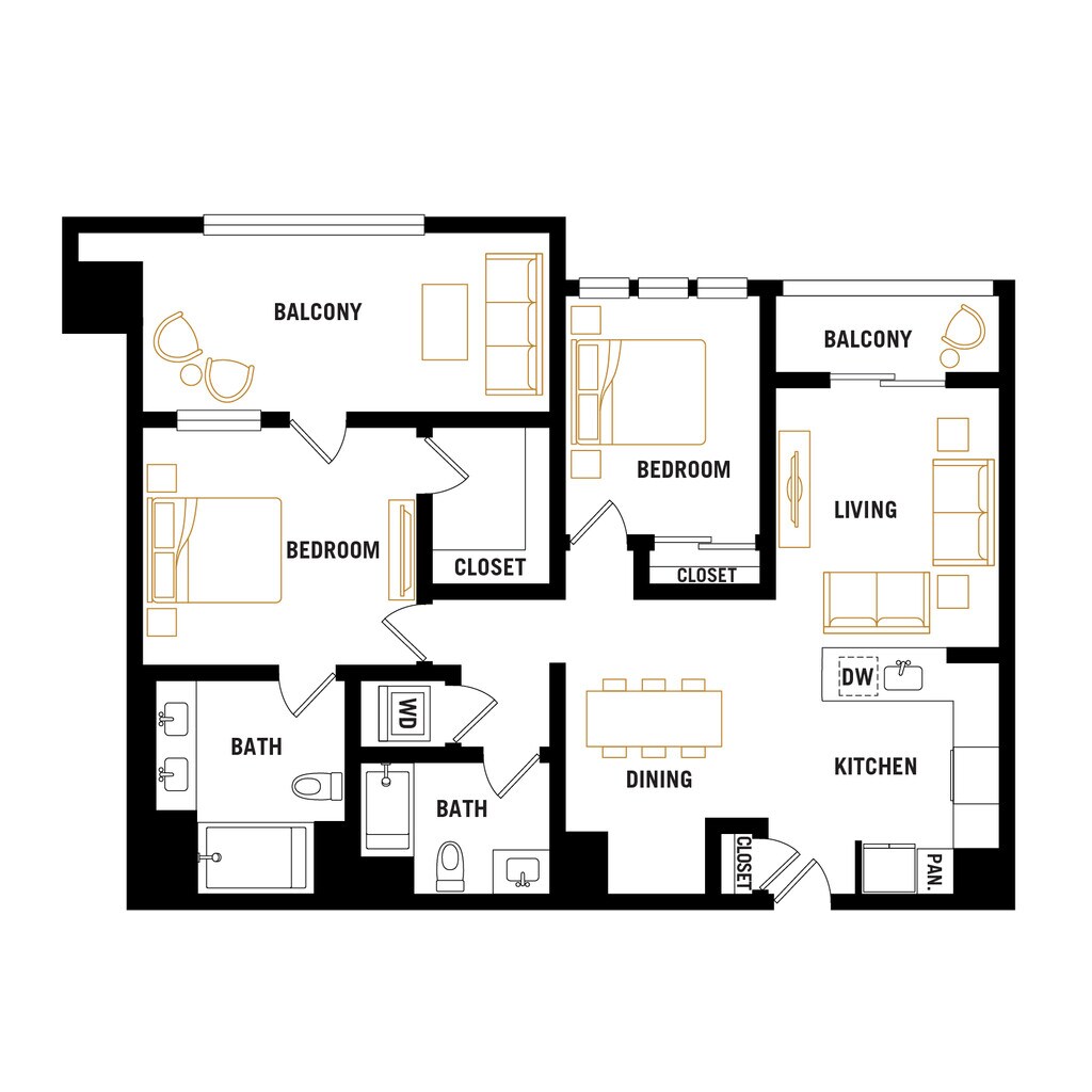 1 Bedroom to 3 Bedroom Apartments at The Ryden currently range from $2,950 to $4,378