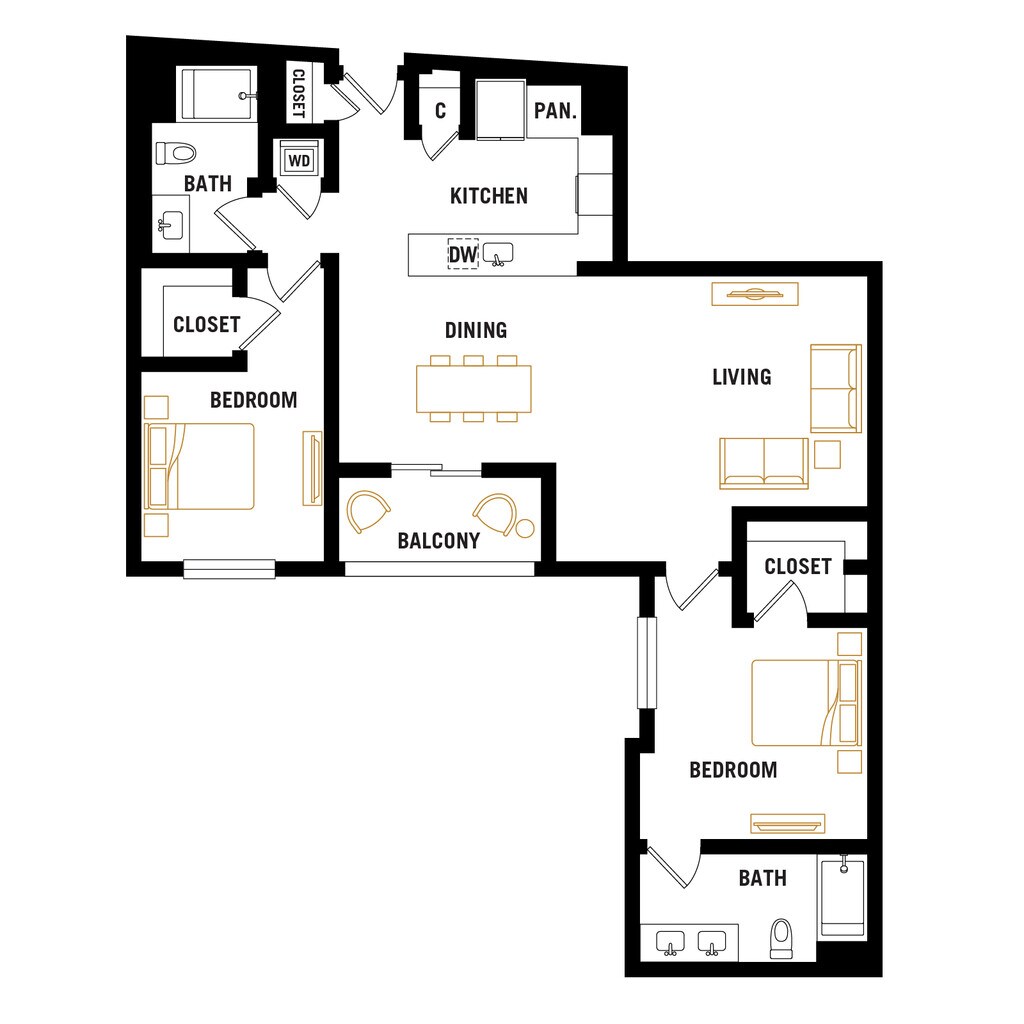 Apartment Model: B2Call For Rates2 Bedroom, 2 Bath, 1470 sq ftUnavailable- Floor plans are artist's rendering. All dimensions are approximate. Actual product and specifications may vary in dimension or detail. Not all features are available in every rental home. Prices and availability are subject to change. Base rent is based on monthly frequency. Additional fees may apply, such as but not limited to package delivery, trash, water, amenities, etc. Deposits vary. Please see a representative for details. ![]() - B2 - Floorplan 1