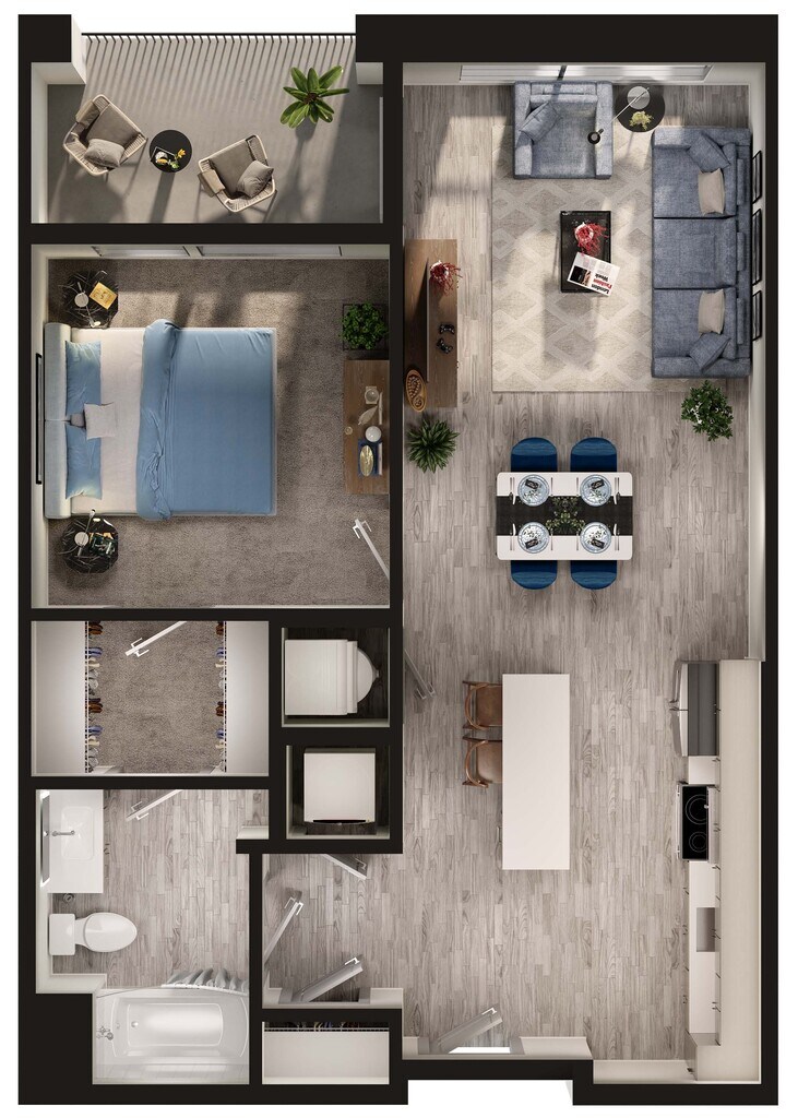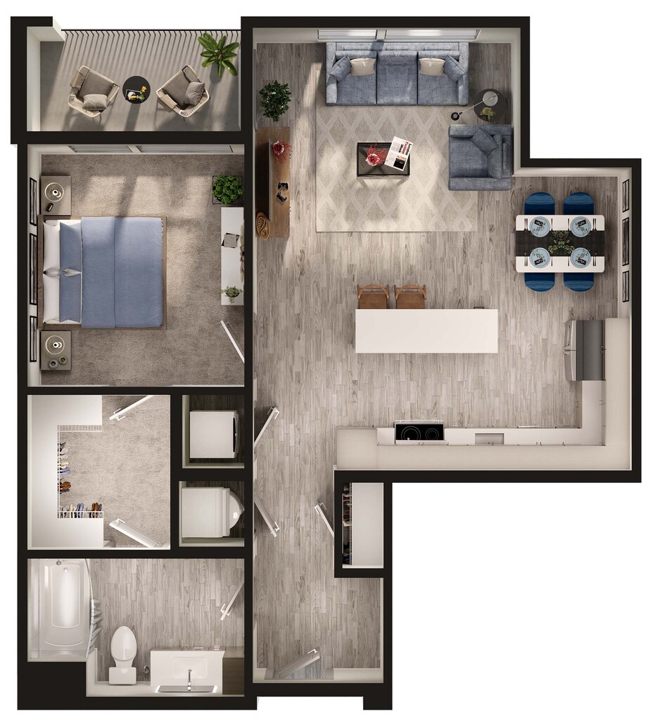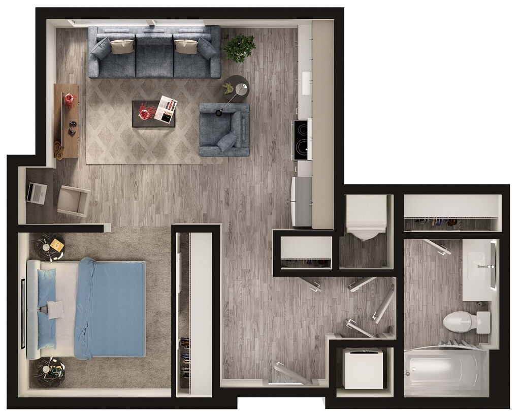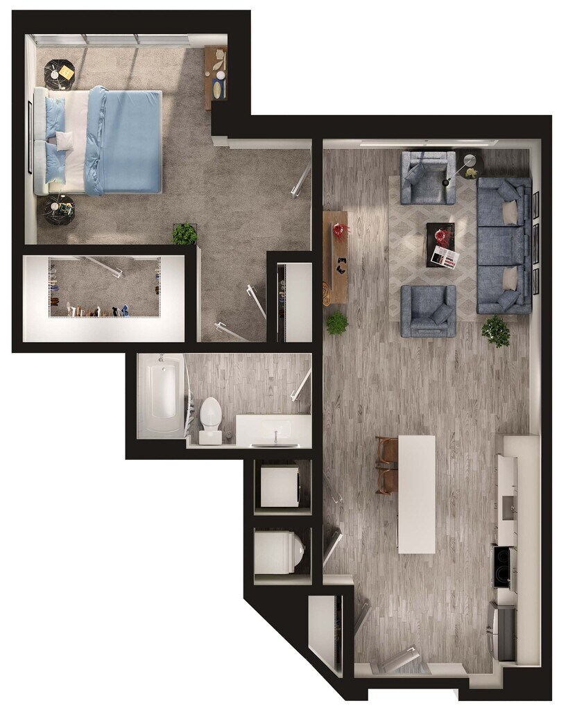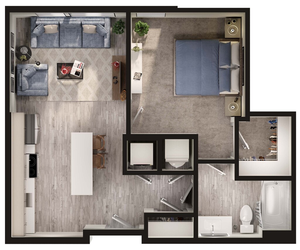 1 Bed, 1 Bath, 566 sq ftModel Gallery
