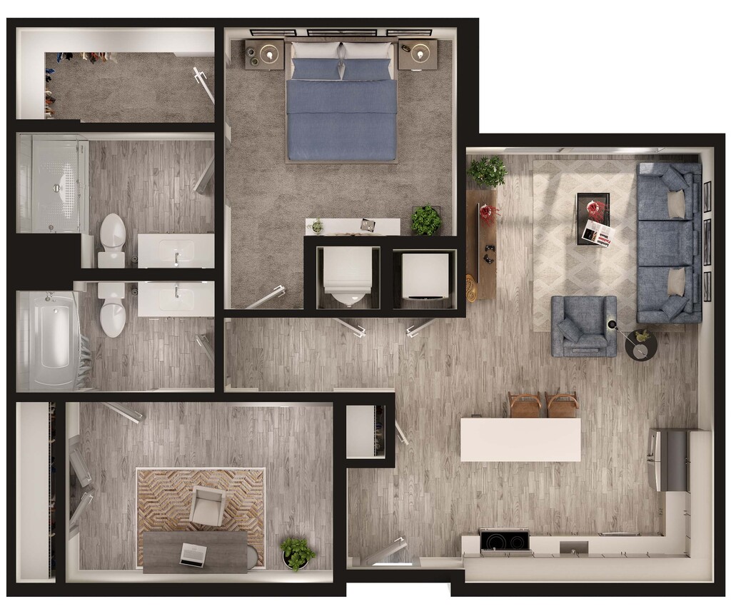 1 Bed, 1 Bath, 730-734 sq ftAvailable NowModel Gallery