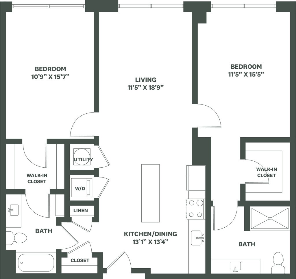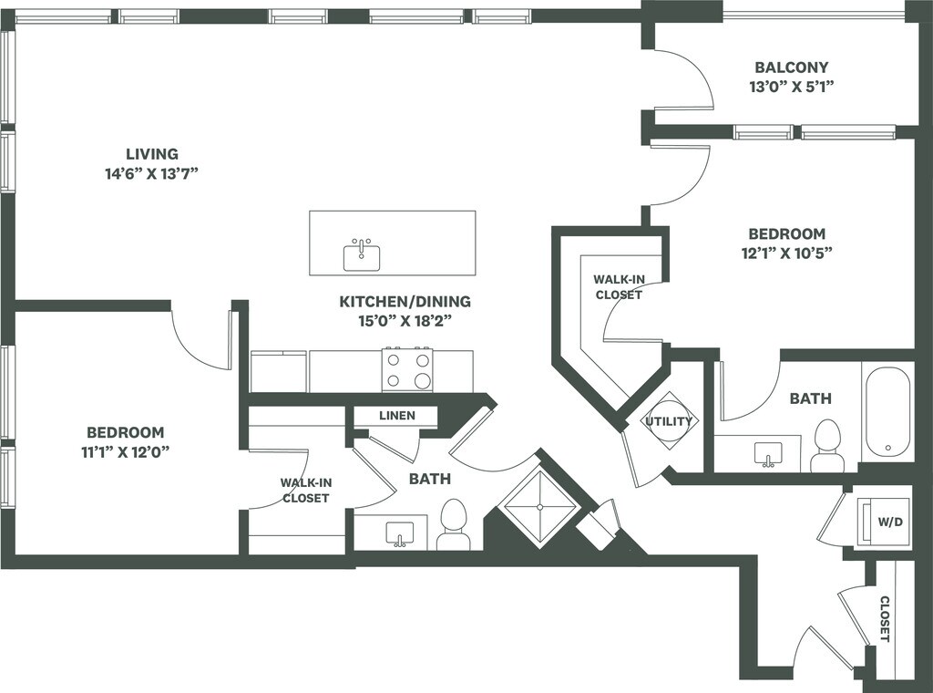 Apartment Model: A2From $1,9261 Bedroom, 1 Bath, 615 sq ftUnavailable![]()