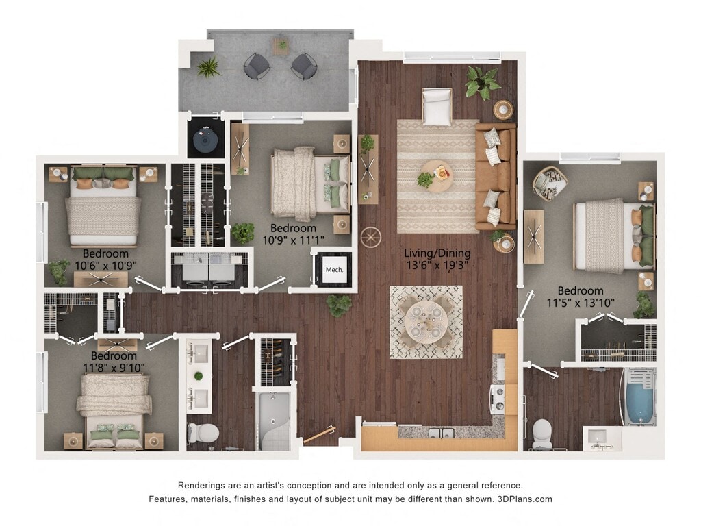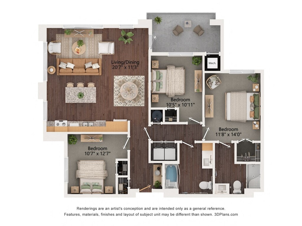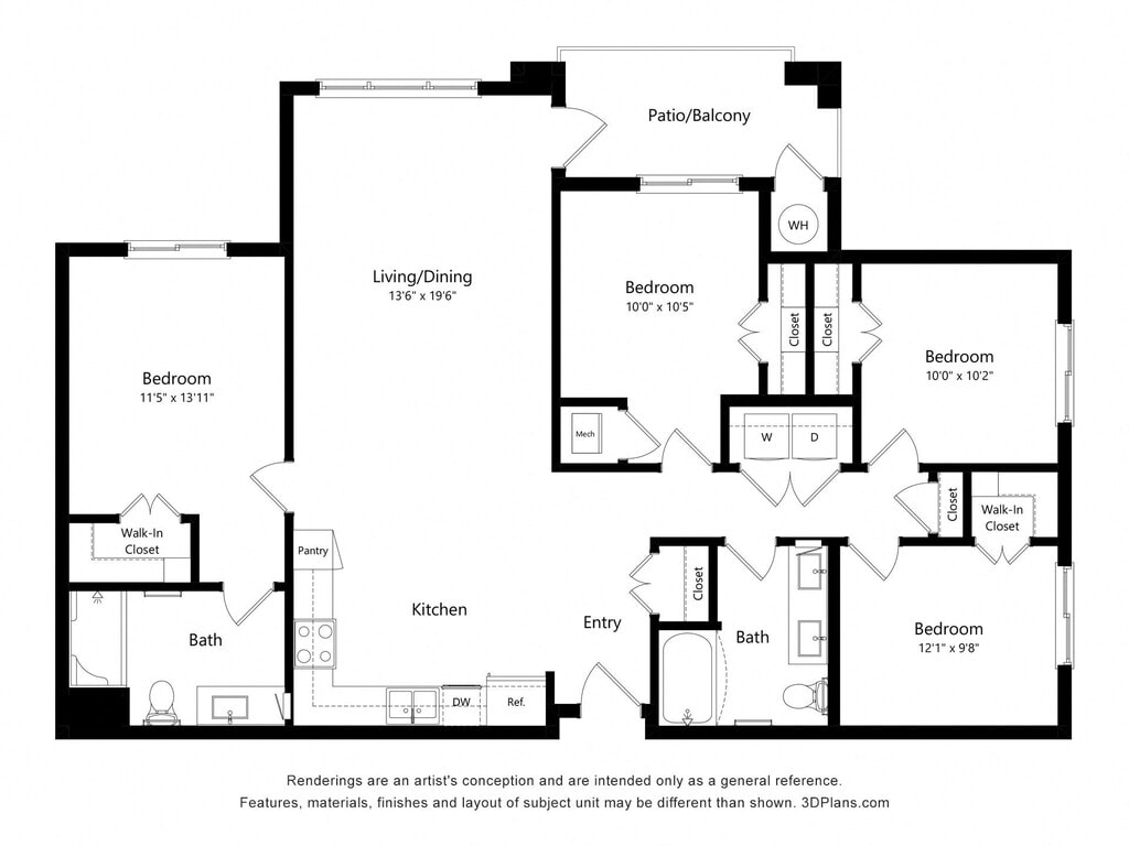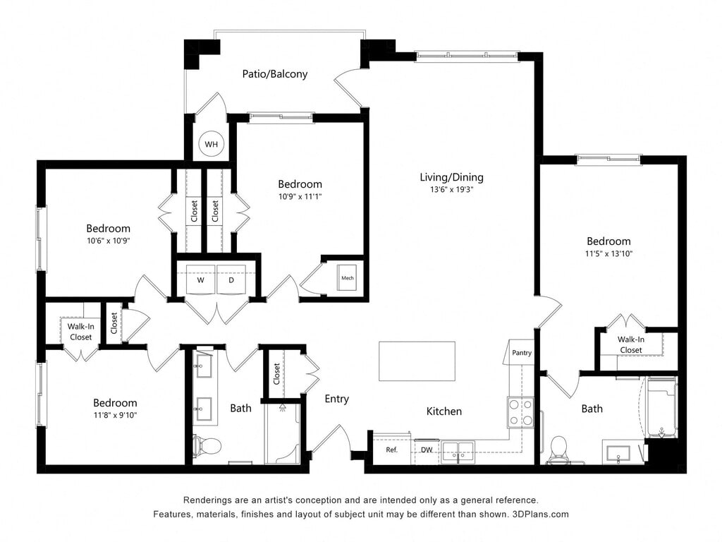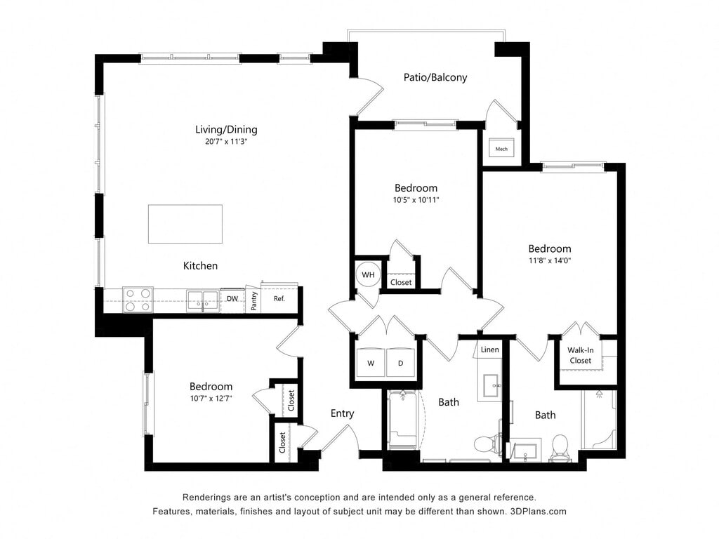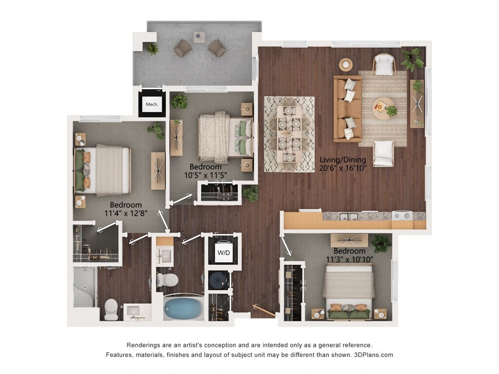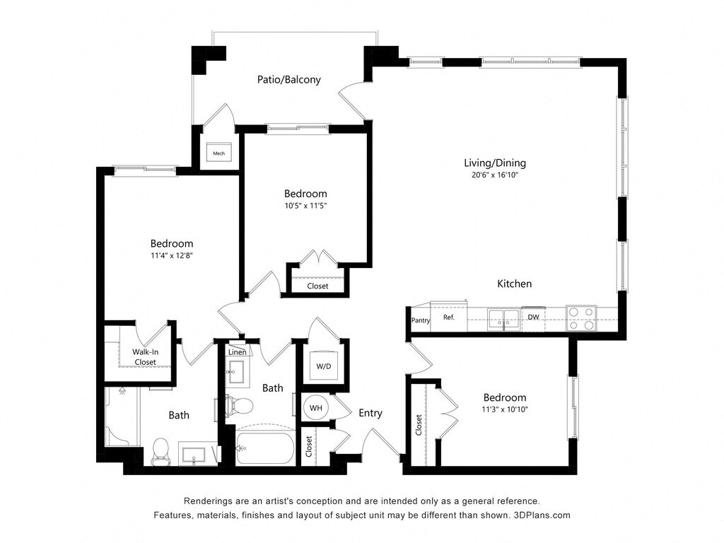 Apartment Model: 3AA (Wheelchair Accessible)$1,3443 Bedroom, 2 Bath, 1160 sq ftUnavailable![]()