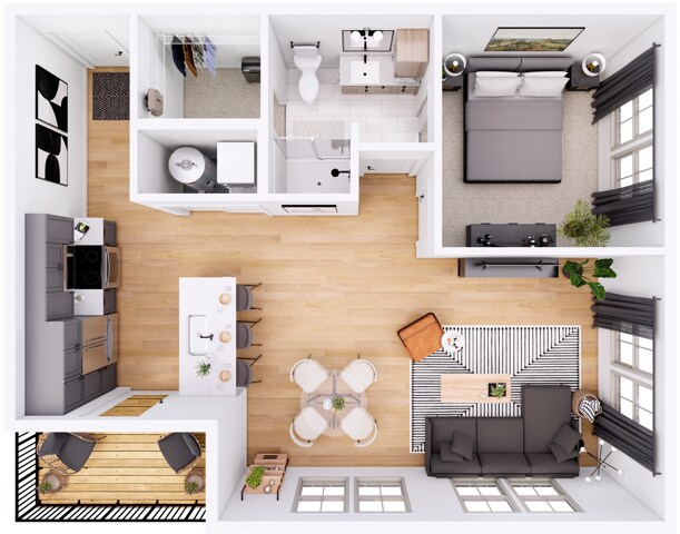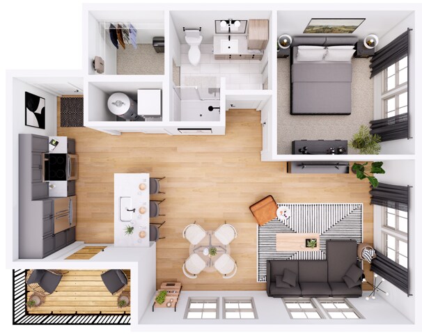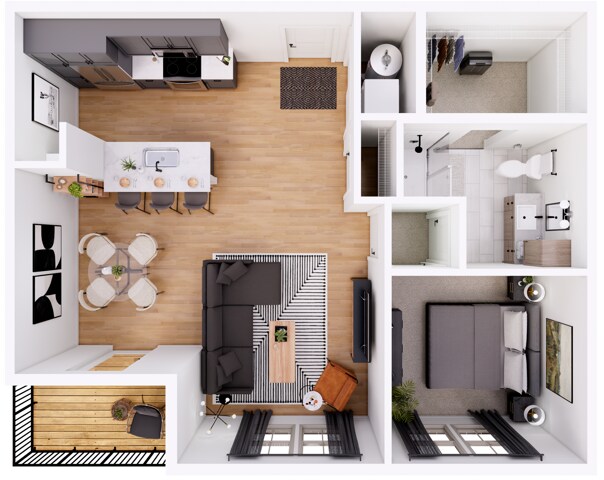 1 Bed, 1 Bath, 566 sq ftAvailable NowModel Gallery