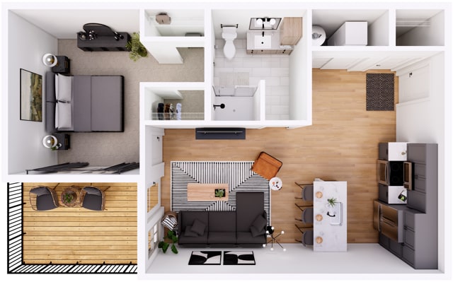 1 Bed, 1 Bath, 634 sq ftAvailable NowModel Gallery
