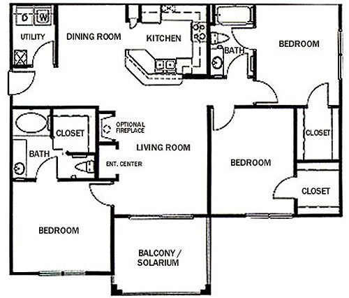The Dilworth W/Solarium - Floorplan 1 Floor plans are artist's rendering. All dimensions are approximate. Actual product and specifications may vary in dimension or detail. Not all features are available in every rental home. Prices and availability are subject to change. Base rent is based on monthly frequency. Additional fees may apply, such as but not limited to package delivery, trash, water, amenities, etc. Deposits vary. Please see a representative for details.