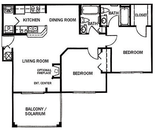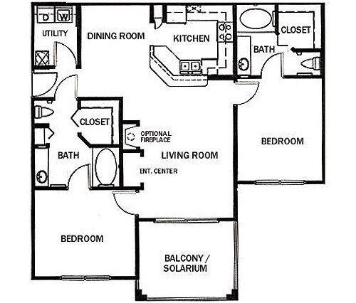 The Dilworth W/Solarium - Floorplan 2 Floor plans are artist's rendering. All dimensions are approximate. Actual product and specifications may vary in dimension or detail. Not all features are available in every rental home. Prices and availability are subject to change. Base rent is based on monthly frequency. Additional fees may apply, such as but not limited to package delivery, trash, water, amenities, etc. Deposits vary. Please see a representative for details.