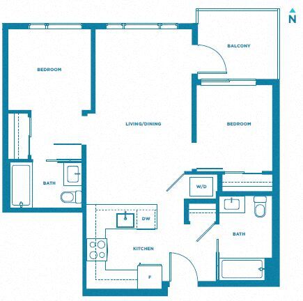 B2 - Floorplan Apartment Unit: 413Apartment Model: B22 Bedroom, 2 Bath, 767 sq ftAvailable NowFloorplan B1