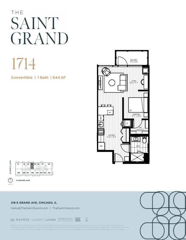 The Saint Grand is located at 218 E Grand Ave near the Streeterville area of Chicago, IL