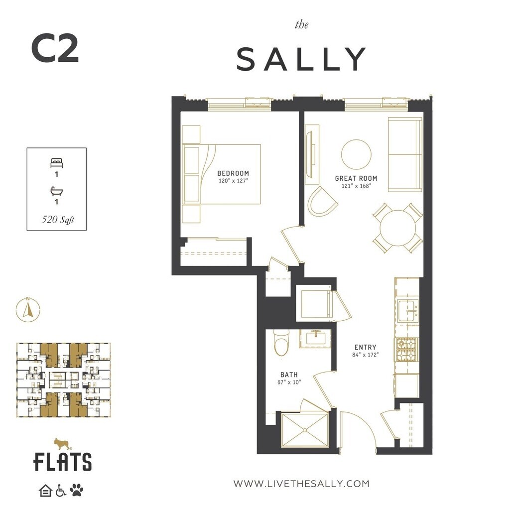 C2 - Floorplan 1 Apartment Unit: A302Apartment Model: C2$2,0451 Bedroom, 1 Bath, 520 sq ftAvailable Now![]()