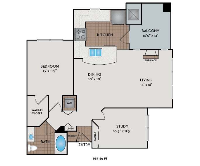 1 Bed, 1 Bath, 967 sq ftAvailable NowModel Gallery