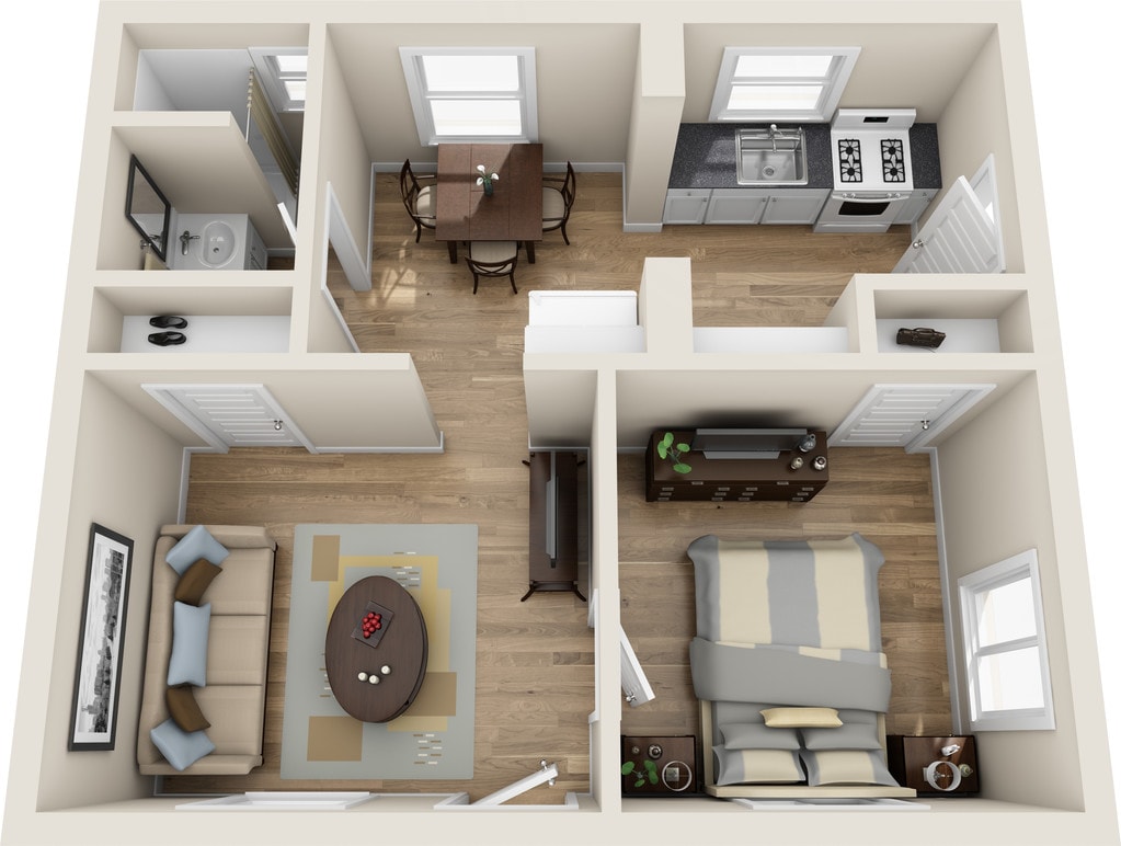 2 Beds, 1 Bath, 487 sq ftModel Gallery