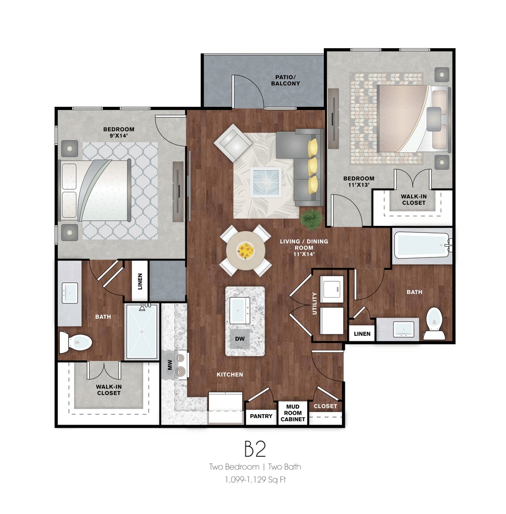 Apartment Model: E2 EssentialFrom $1,2691 Bedroom, 1 Bath, 615 sq ftAvailable Now![]()