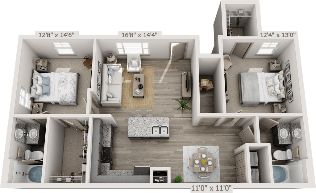 A4 - Floorplan 1 Apartment Unit: 1123Apartment Model: A4$1,1841 Bedroom, 1 Bath, 855 sq ftAvailable March 18, 20262 Bedrooms