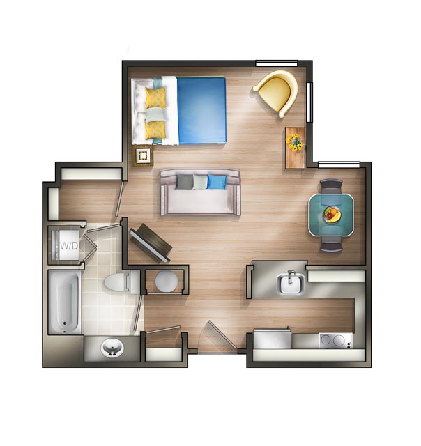 Studio, 1 Bath, 550 sq ftAvailable NowModel Gallery