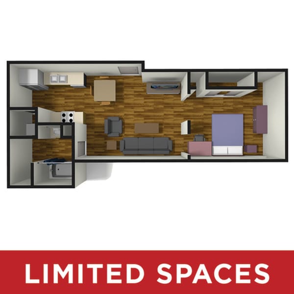 1x1 - Floorplan 2 Apartment Unit: PrivateApartment Model: 1x1$1,1191 Bedroom, 1 Bath, 491 sq ftAvailable August 14, 20263 Bedrooms