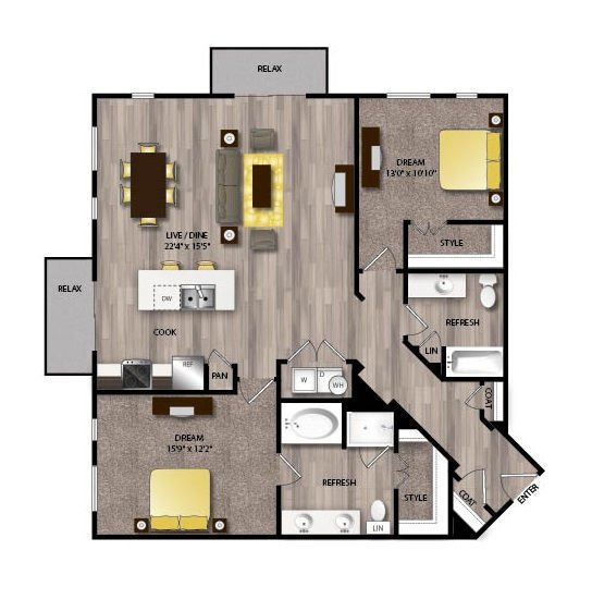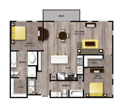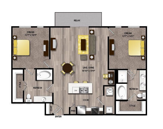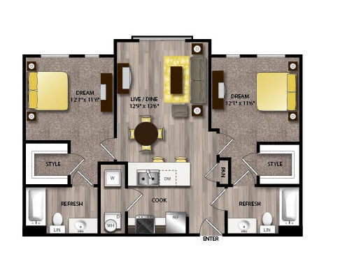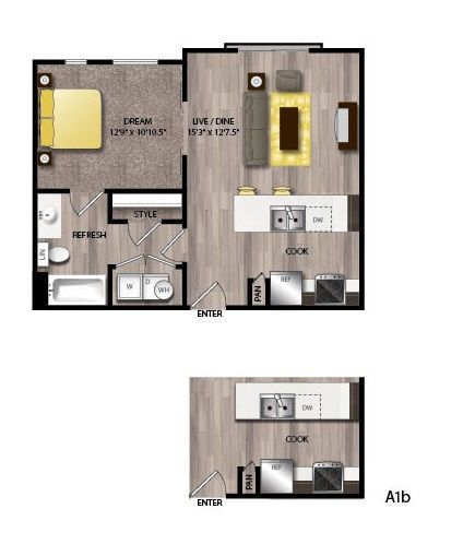 1 Bed, 1 Bath, 667 sq ftAvailable NowModel Gallery
