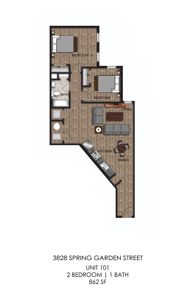 2 Beds, 1 Bath, 862 sq ftAvailability Details