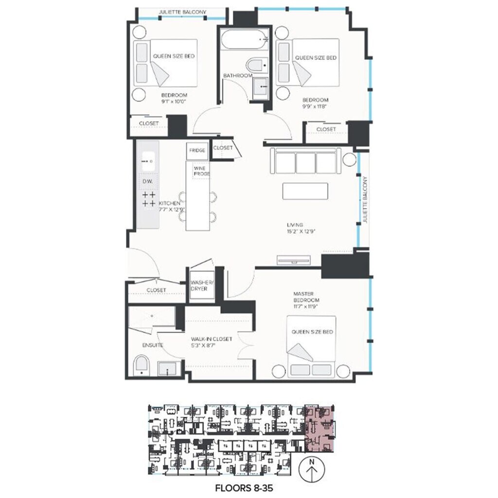 A13 - Floorplan 1 Apartment Unit: 2807Apartment Model: A13From $2,4431 Bedroom, 1 Bath, 603 sq ftAvailable NowApartment Unit: 3507Apartment Model: A13From $2,4581 Bedroom, 1 Bath, 603 sq ftAvailable January 7, 2026Floorplan A15