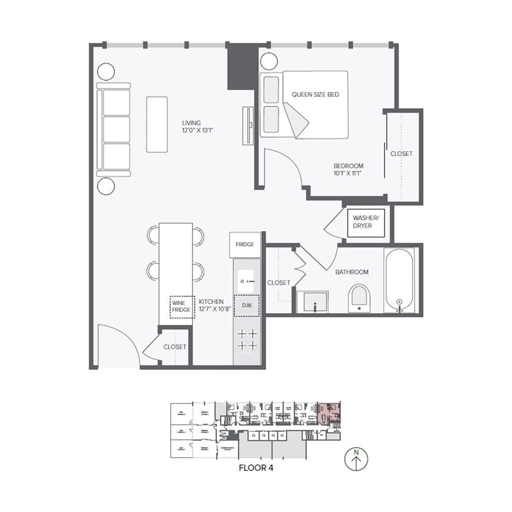 A10 - Floorplan 1 Apartment Unit: 1502Apartment Model: A10From $2,3381 Bedroom, 1 Bath, 565 sq ftAvailable NowApartment Unit: 1902Apartment Model: A10From $2,3931 Bedroom, 1 Bath, 565 sq ftAvailable NowFloorplan A12