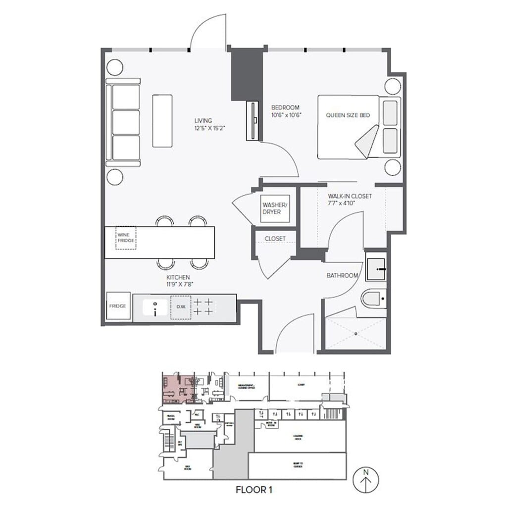 A15 - Floorplan 1 Apartment Unit: 4510Apartment Model: A15From $2,5281 Bedroom, 1 Bath, 582 sq ftAvailable NowApartment Unit: 4910Apartment Model: A15From $2,5481 Bedroom, 1 Bath, 582 sq ftAvailable NowFloorplan A11