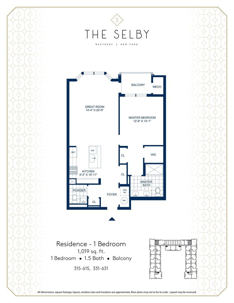 1 Bed - 1.5 Bath - Terrace - Floorplan 1 1 Bed - 1.5 Bath - Balcony