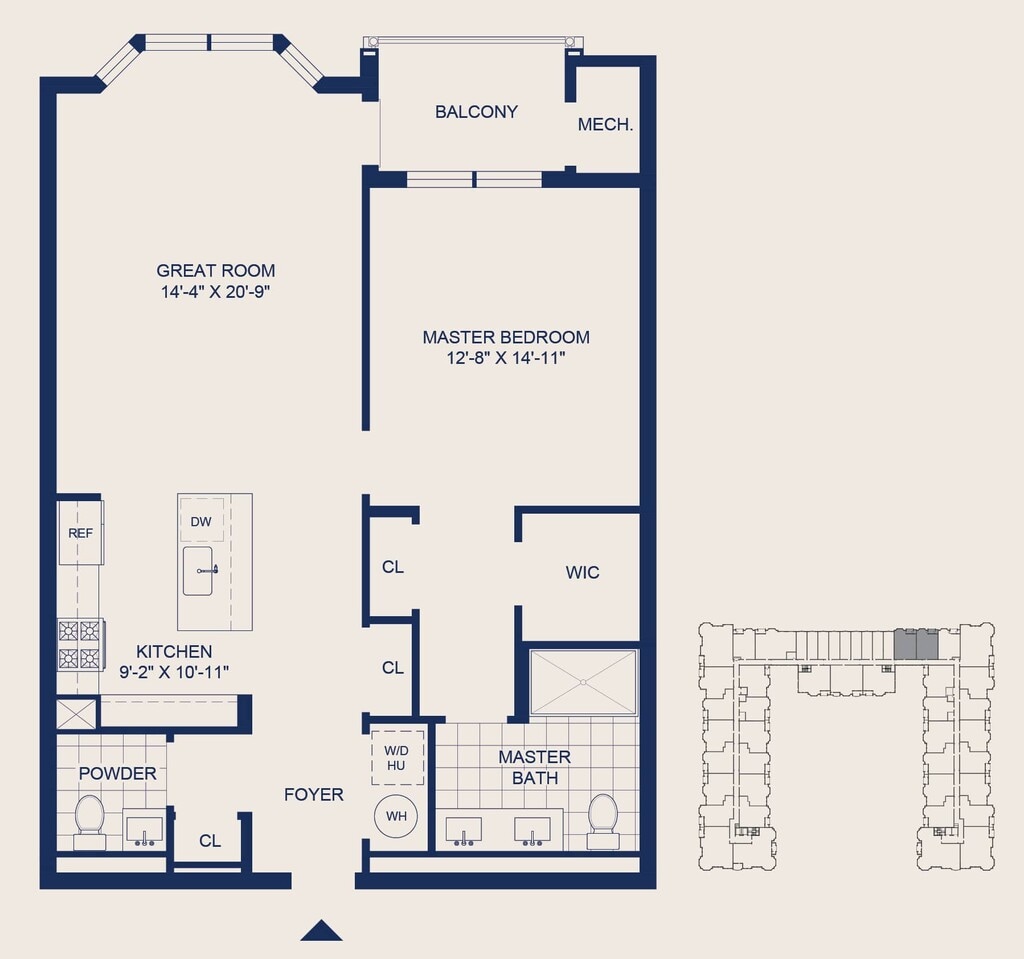1 Bed, 1.5 Baths, 1262 sq ftLargest 1 BedroomThis is the largest 1 Bedroom at this PropertyModel Gallery