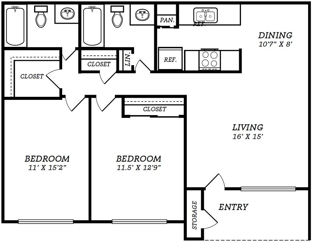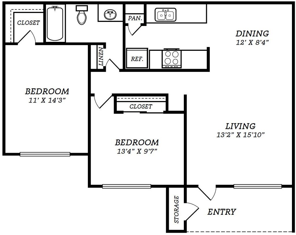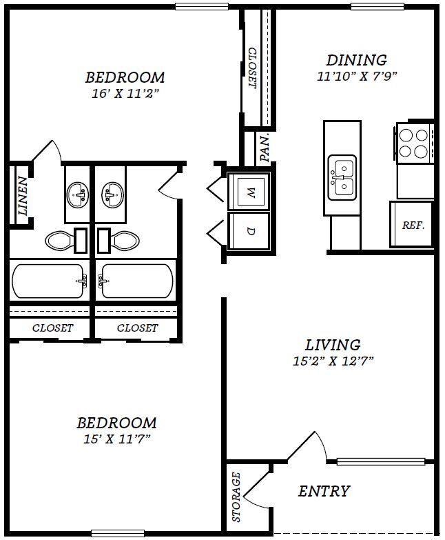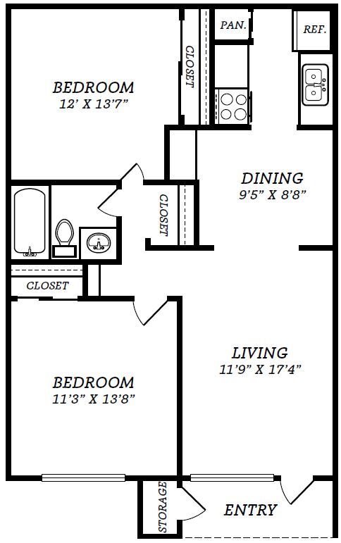 Apartment Model: 2 Bed/1 Bath - B1/B2 LayoutFrom $9252 Bedroom, 1 Bath, 906 sq ftAvailable Now![]()