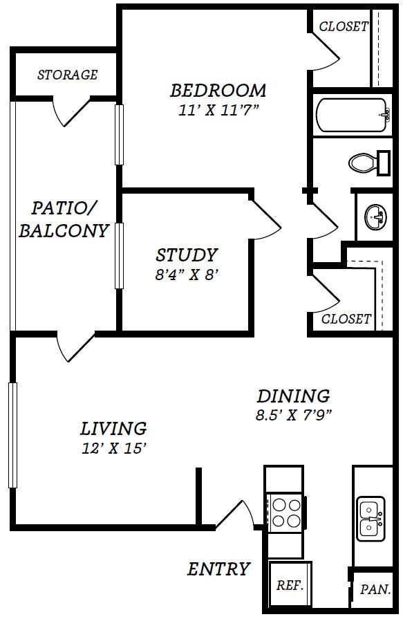 Apartment Model: 1 Bed/1 Bath w/Den - A3 LayoutFrom $8751 Bedroom, 1 Bath, 844 sq ftAvailable Now![]()