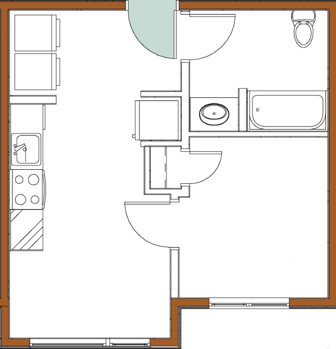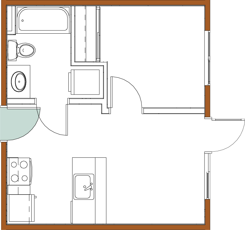 Studio - Galley - Floorplan 6 Studio - Galley, Outdoor, ADA