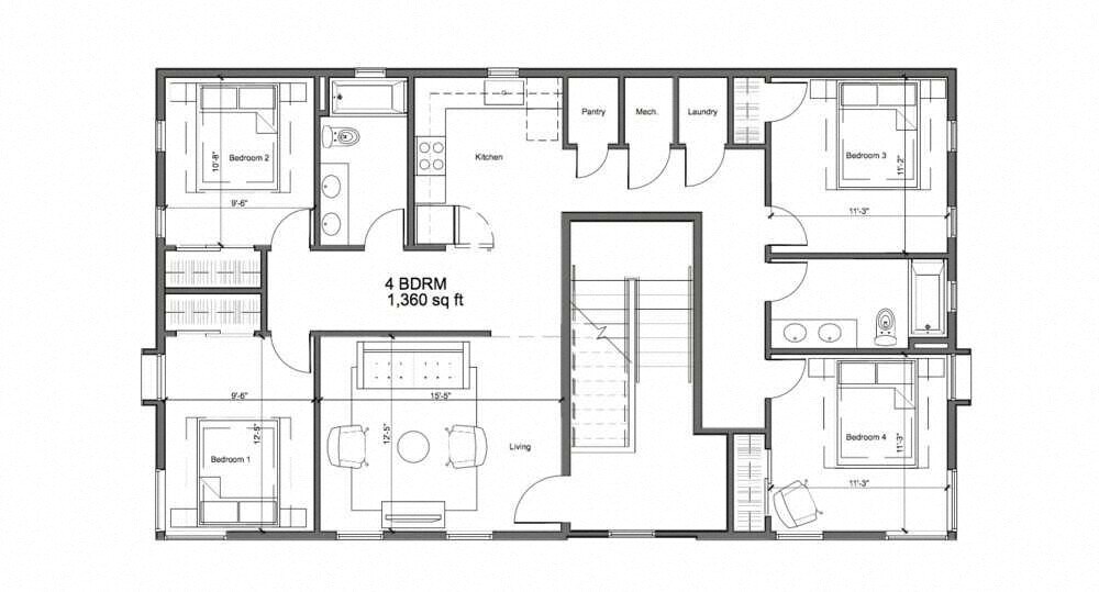 Show Unavailable FloorplansFour Bedroom Two Bath